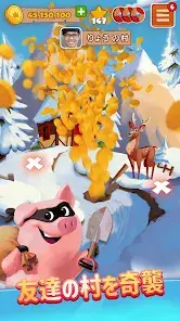 友達を攻撃して必要な物品を奪い取って村作りにつなげましょう!貯金箱を割る必要はありません。敵を攻め返して勝利すればいいのです。村を攻撃してきた敵に反撃!えいっ!奪われたアイテムを取り戻し、スロットを使って再びリッチになろう!友達の村にどんな宝が潜んでいるか、楽しみながら探り当てよう!